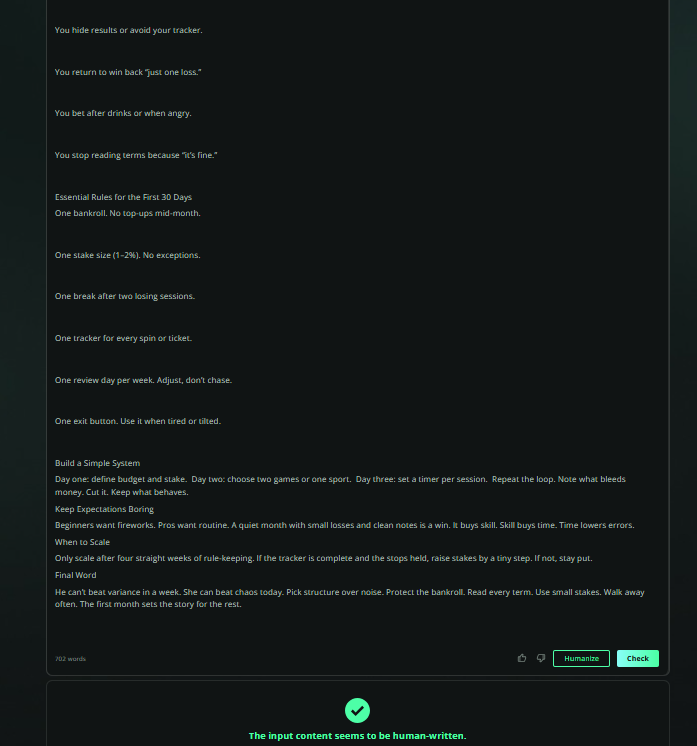 He can’t beat variance in a week. She can beat chaos today. Pick structure over noise. Protect the bankroll. Read every term. Use small stakes. Walk away often. The first month sets the story for the rest.
