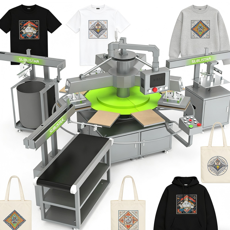 The SUBLISTAR X-PRESS V6.0 is a strong example of this type of system. It combines robotic film handling, vision-guided peeling, and conveyor output into a single integrated machine—capable of processing up to 360 garments per hour.