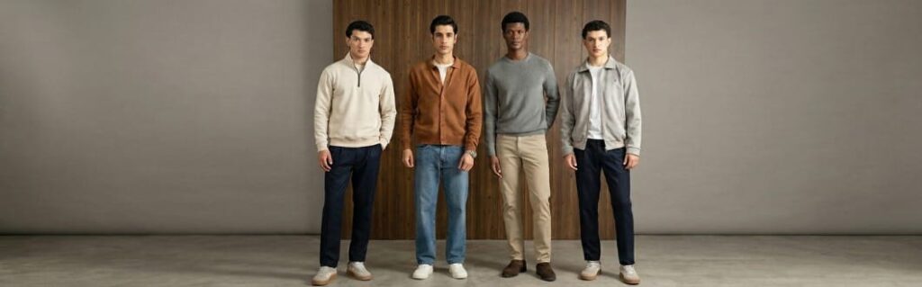 Add one structured sweatshirt. Men’s sweatshirts have evolved beyond gym wear. A solid crew neck paired with dark denim looks sharp without trying too hard. It’s the modern smart-casual staple.
